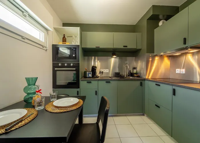 A kitchen is equipped with coffee/tea making equipment, as well as a microwave, a fridge, and kitchenware for self-catering purposes. This apartment is right off the nearest bus stop Cite de l'Entreprise.